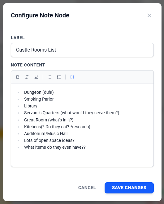A Note is a simple node to allow you to capture any thoughts you have. Note nodes do not have connectors, so they cannot be tied into the flow.